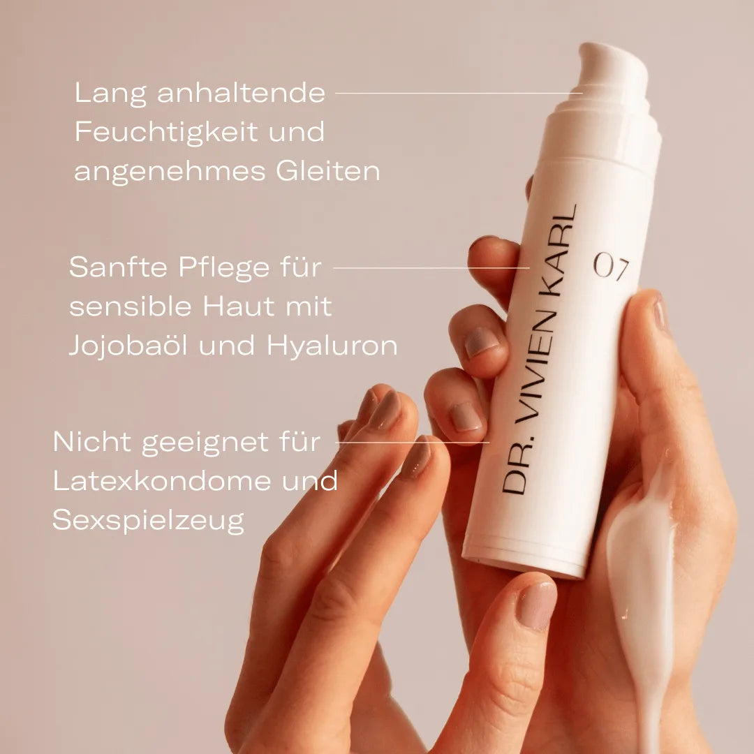 Mit dem Eintreten der Wechseljahre ändert sich der Hormonspiegel und die Haut im Intimbereich kann trockener werden. Damit Sex und Intimität weiterhin Spaß machen und der Intimbereich nicht zu trocken ist, empfiehlt Apothekerin Dr. Vivien Karl die Gleitcreme 07. Dies ist eine pflegende Gleitcreme mit hochwertigen Inhaltsstoffen, die den Intimbereich pflegt, schützt und gleichzeitig einen langanhaltenden Gleiteffekt hat. Viele Frauen ab der Menopause nutzen die Gleitcreme 07 und konnten so ein ganz neues Sexleben im Alter entdecken.